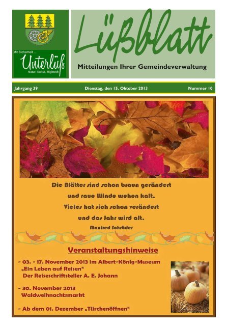 Mitteilungen Ihrer Gemeindeverwaltung Gemeinde Unterluss