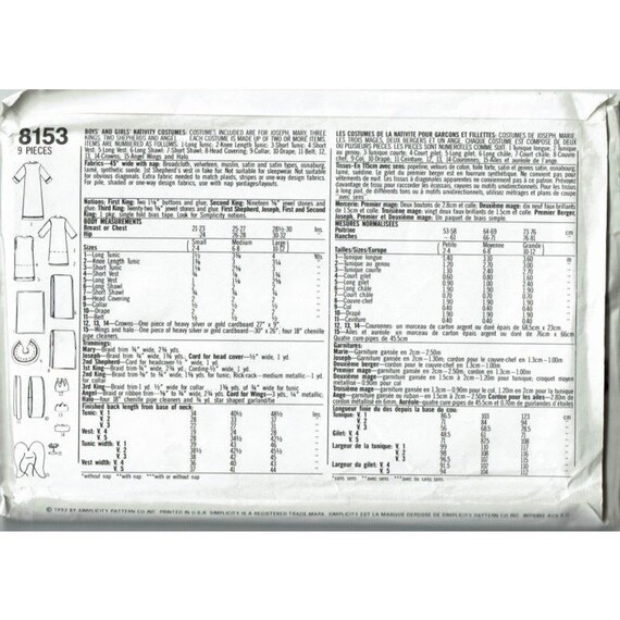 Simplicity Sewing Pattern 4795 Nativity Scene Costumes Angel Etsy